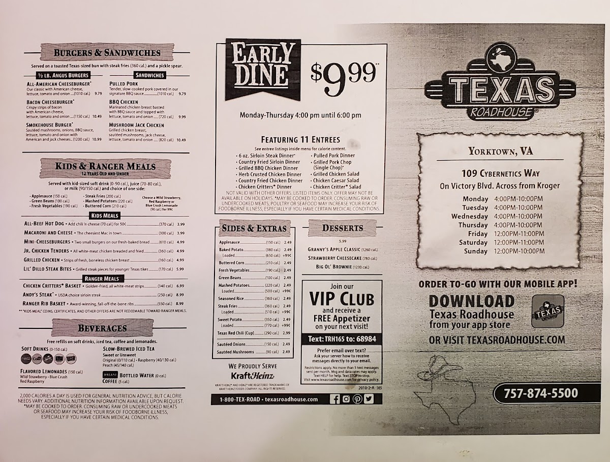 The menu at Texas Roadhouse offers a welcoming mix of classic American and steakhouse favorites, designed for casual and comforting dining experiences. Whether you're stopping by for a hearty lunch or settling in for a relaxed dinner, you'll find dishes that highlight familiar flavors served in a warm, lively atmosphere.